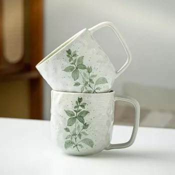 Handmade Green Leaf Ceramic Coffee Mug 11oz